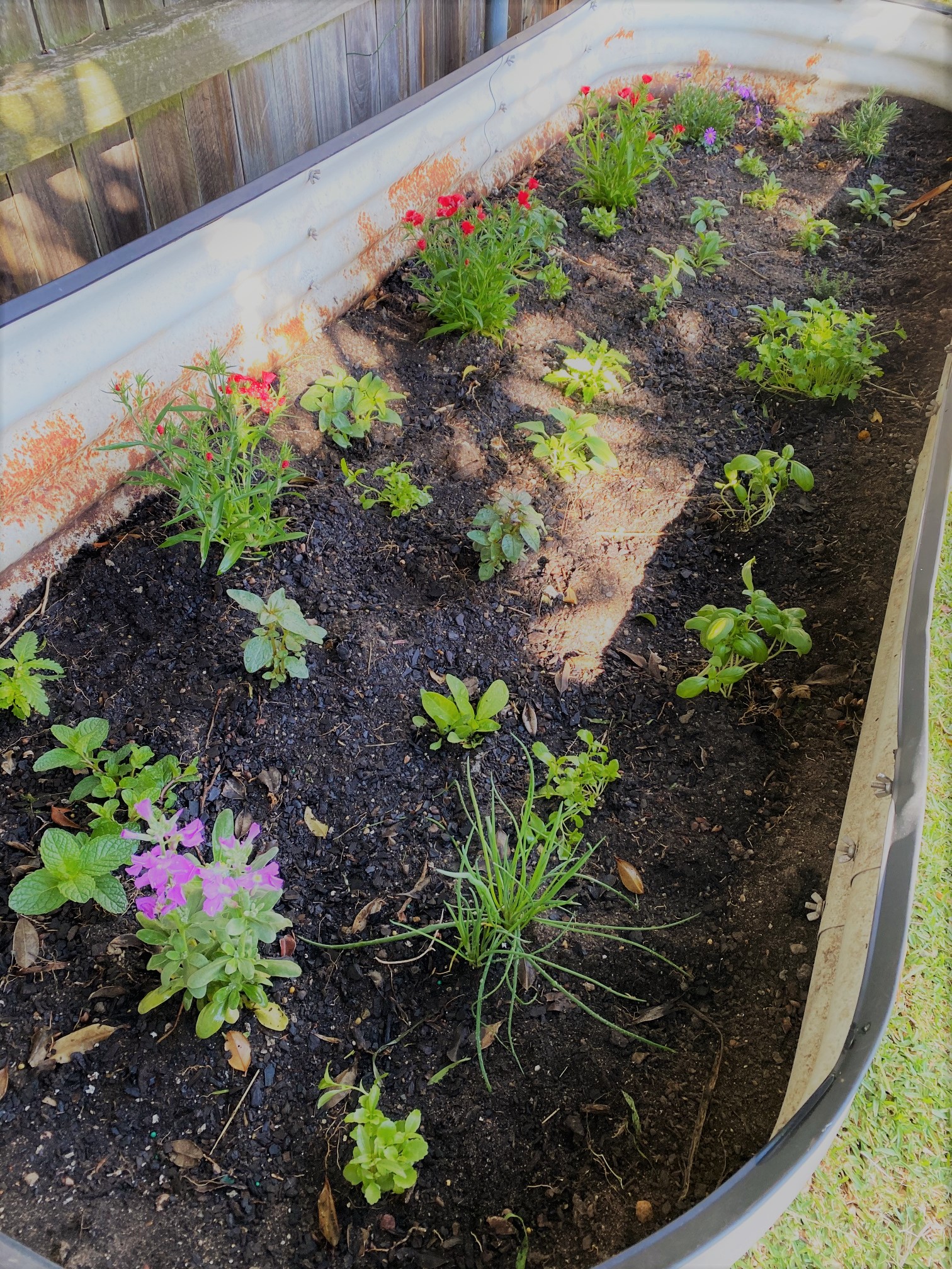 What a breathtakingly cathartic experience — and one I can highly recommend as a delight! But was what was even more delightful was replanting the raised bed with loads of spring flowers and verdant herbs, and watching each plant blossom and grow. I have relished being able to use herbs straight from the back yard when I cook, and have enjoyed the surprise of seeing colours emerge and change as different flowers bloom.